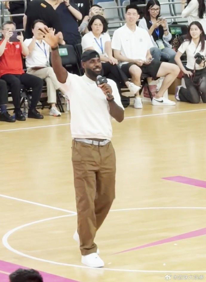 中国男篮球员朱俊龙现身活动现场,坐在场边第一排观看詹姆斯的中国行活动。