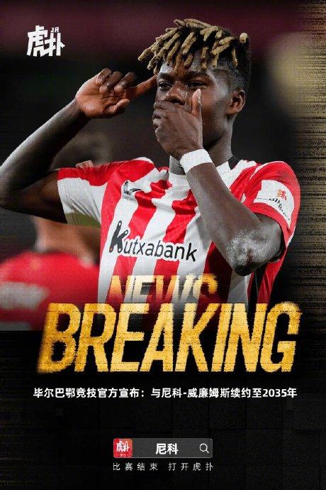 此前,毕尔巴鄂竞技官方宣布:尼科-威廉姆斯与俱乐部续约至2035年。