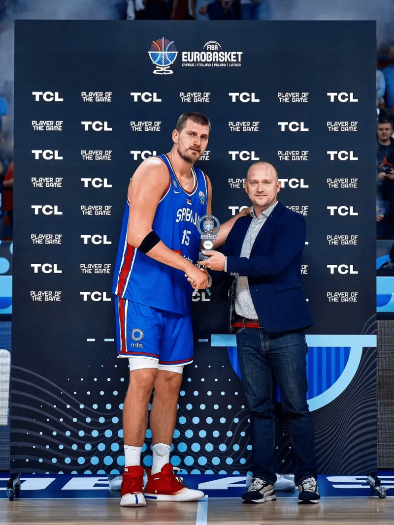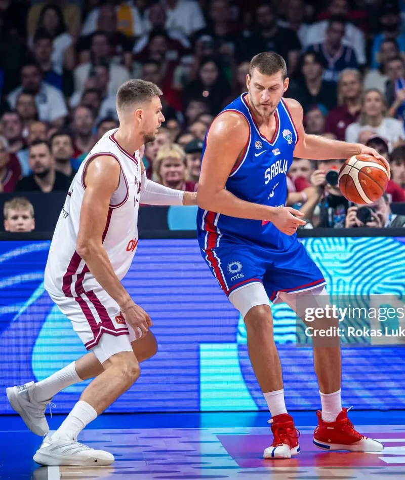 本场比赛,塞尔维亚队球员尼古拉-约基奇出场31分钟,投篮26中15,三分球4中1,罚球8中8,得到39分10篮板4助攻3抢断。