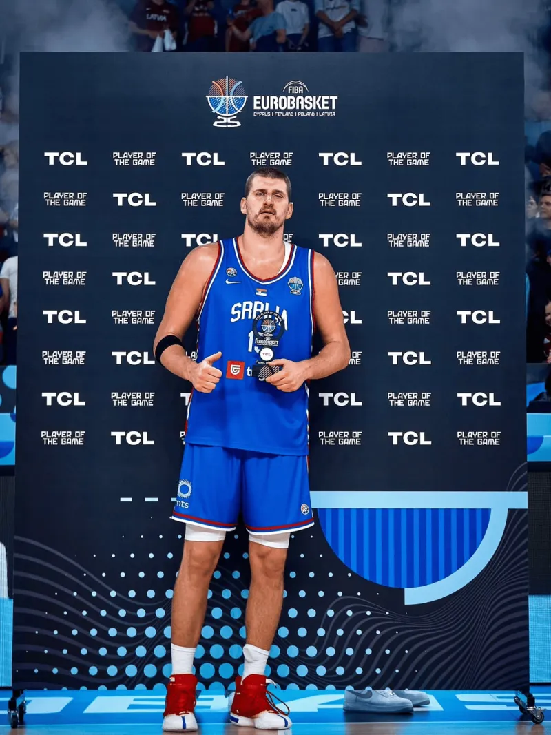 约基奇今日穿着国家队配色Joker1,得到39分10篮板